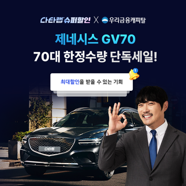 이번 프로모션은 우리금융캐피탈과의 협업으로 진행하며 오직 지엔에이에서만 GV70을 단독 할인특가로 이용할 수 있는 기회를 제공한다.
